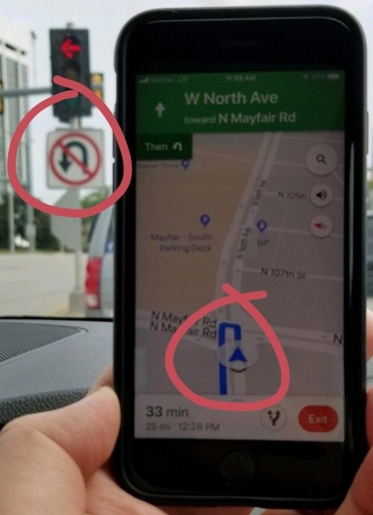 7. 當你看著禁止迴轉的標誌再看看估狗導航:這裡迴轉!