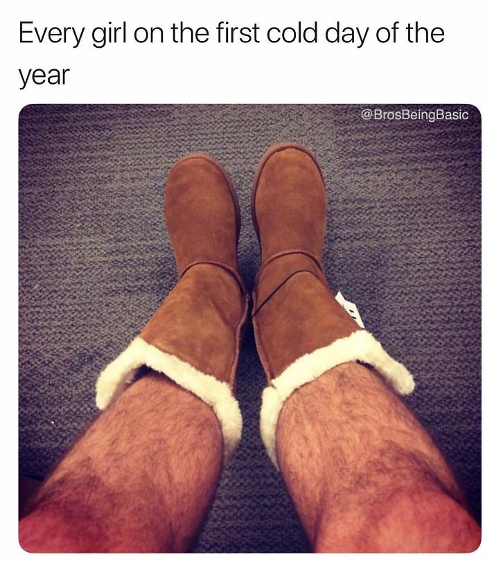 12. 「每个女孩在天气变冷的第一天,都要穿雪靴拍照。」