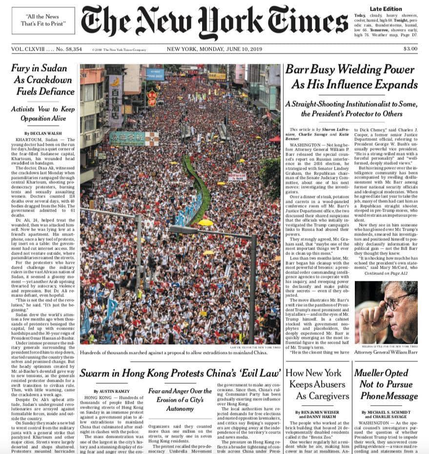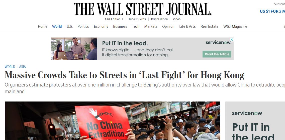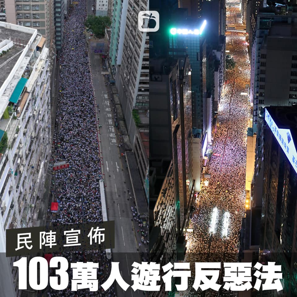 昨天 (6月9日) 香港超過100萬人上街進行「反送中遊行」,反對修訂《逃犯條例》,憂慮中國將恣意逮人、政治犯被直接引渡到中國受審,畫面震撼全球。       這次「反送中遊行」被認為是香港史上最大規模的遊行,比2003年50萬人上街反對23條立法 (將分裂國家行為與顛