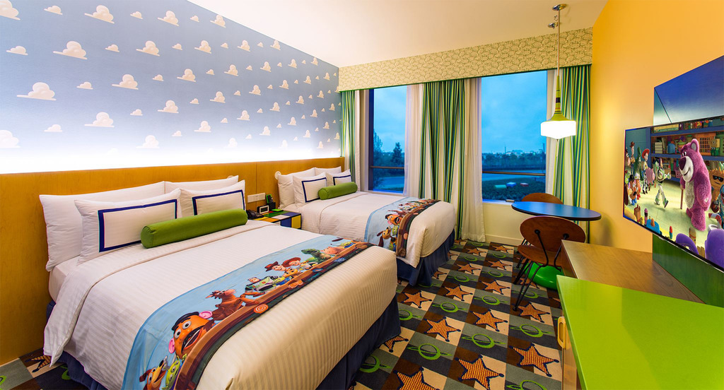 根據消息,迪士尼即將要打造的這一間「玩具總動員飯店」會在2021年開幕,這間也會成為迪士尼的第5間飯店,預計占地4萬平方公尺,地上11層、地下1層,共有高達600多間的房間,其中還有還原《玩具總動員》裡面安迪的那一間!