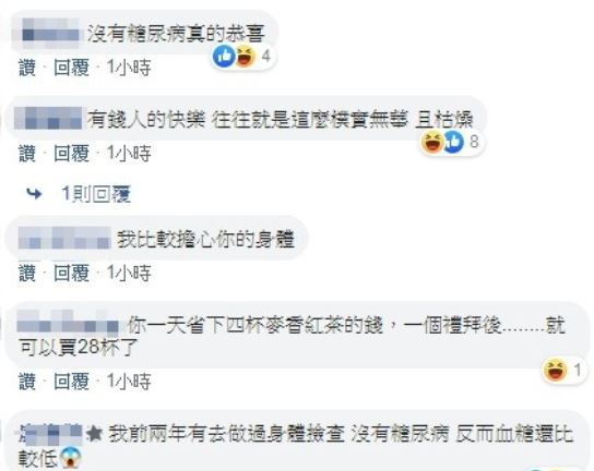 發文引起網友熱議,「我一喝就偏頭痛,屢試不爽!無緣享用」、「工廠作的飲料都化學的」、「我一口都喝不下去,好甜」;也有人擔心原PO的健康,「馬桶旁邊看看有沒有螞蟻」、「錢不是主要問題,重點在於每天四罐你的血糖」、「花了35萬喝糖水」。對此原PO回應說,「我前兩年有去做過身體撿查,沒有糖尿病,反而血糖還比較低」,並有了想戒的念頭。