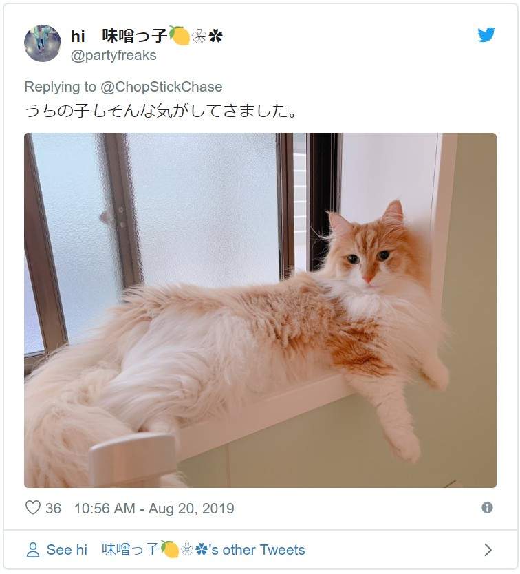 仔细一看猫皇本人整个圆滚滚的,全都是厚厚的毛,一点都没有要过夏天的意思。这篇贴文马上在推特引发热烈讨论,让不少猫奴都开始怀疑自己家的主子,是不是也根本没有换毛。