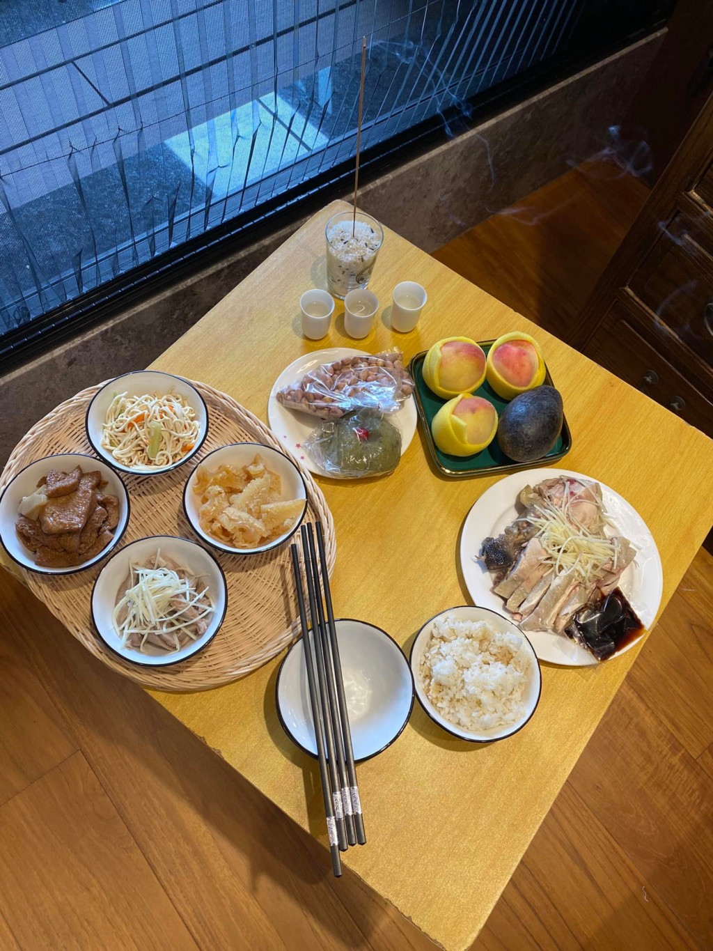 郁方表示,拜拜时,鸡腿和油饭必备,也会准备水果和小菜,但孩子吃油饭会胀气,所以自己会准备鸡油饭。