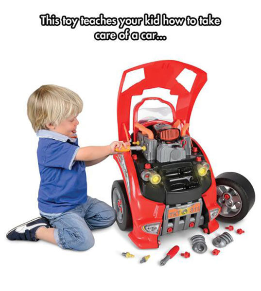 10. 这个车车玩具可以训练小孩长大变黑手。