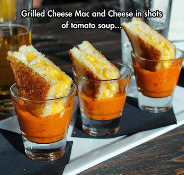 12. 装在shots杯的乳酪三明治与番茄汤。