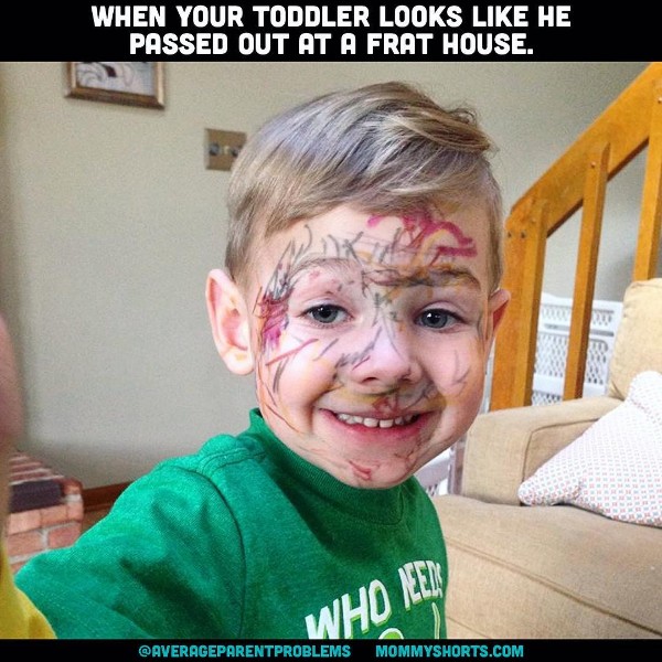 「当你看到你的小孩像是从兄弟会的房间里醒来的样子。」