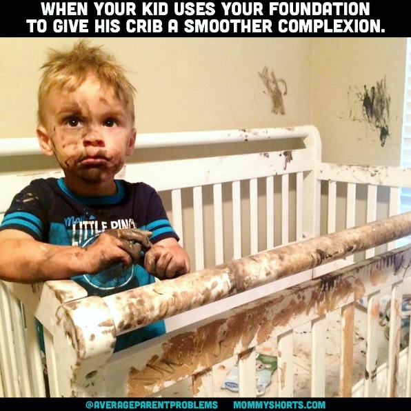 3. 当你的小孩决定用妳的粉底液来粉刷他的婴儿床…