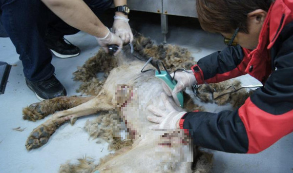 救難人員7日在臉書PO文表示,「是路過的民眾看到有隻大狗從天而下,趕緊通報我們去救援」,透露敖妹是有晶片卻沒寵登資料的可憐汪星人,初步檢查身體健康狀態欠佳,不僅腳斷內出血問題外,全身上下還因皮膚病潰爛的血肉模糊。
