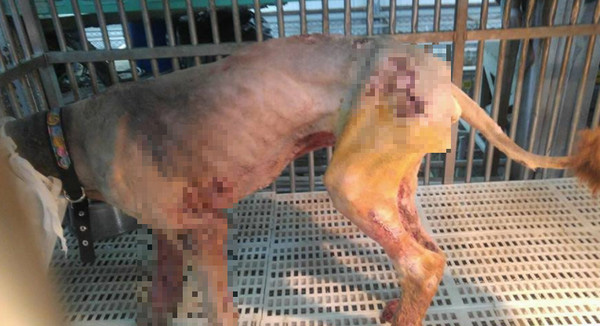 據悉,一般成年獒犬體重大約可以到70-80公斤,但這隻被救的母獒犬體重僅有20公斤。