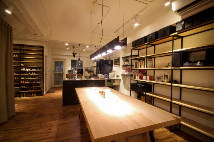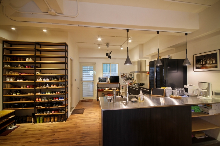4. 一到二樓就會先看到一個巨大的開放式鞋櫃,原先他認為這樣的鞋櫃應該要很久才會擺滿,但這3年的時間,他的太太已經把空間都補齊了。