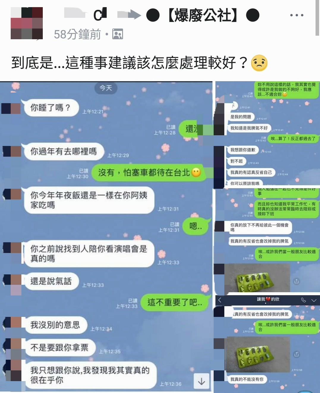 日前一名台北悲情男網友上「爆廢公社」,表示自己好不容易搶到張學友的演唱會票,原本想要跟女友一起去,沒想到被女友的一句「開車跟騎車接送很沒面子」竟吵到分手,後來前女友竟然跑到了「靠北男友」說男友亂發文,害她被冠上公主病,最後說:「原本還想復合,我看現在是不用了!」最後還惹到要提告「這裡是前面提要」。正當大家以為故事應該就到這裡結束時,日前16日,男子竟然又出現在臉書的「爆料公社」發文求救。