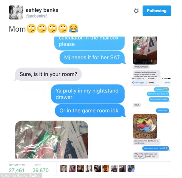 有時候媽媽這種生物就是會讓人又好氣又好笑!在美國德州有一名16歲的女孩艾許莉 (Ashley Banks) ,有天她傳訊息給媽媽,拜託媽媽從她房間拿出一台黑色的計算機放在信箱內,因為她朋友考試時想要跟她借用,沒想到在尋找時,卻發現到了一個讓媽媽瞬間震怒的物品。