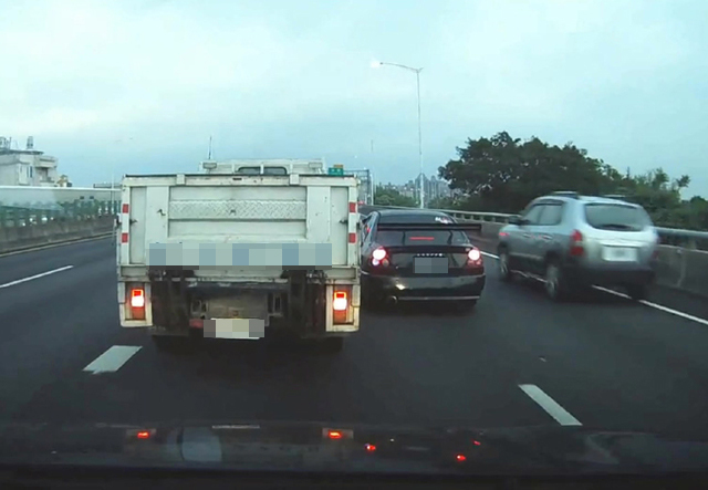 原PO表示,這輛轎車「根本就是逼車了吧」,可以看到轎車緊貼著貨車移動,一時之間雙線道呈現三輛車並行的畫面,為了順利卡位,還不時緊急煞車,讓後方駕駛直呼真的很危險,但最後轎車還是順利插隊成功,插入了貨車前方。事後原PO檢舉了該輛轎車,但不知道是否為被受理,並在29日更新表示,逼車駕駛有意想向貨車司機道歉,貨車司機也希望可以把事情說開,因此希望可以透過網路聯絡上彼此,好好解決這件事情。