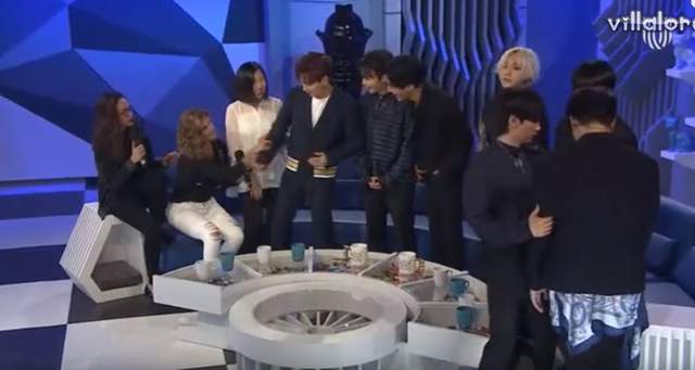 而當粉絲怒火漸漸消退時,中場熱舞橋段時,始源被主持人CUE一起跳一段雙人舞,沒想到最後主持人竟然親始源嘴巴!粉絲集體爆炸表示「親嘴也是風俗民情嗎?」