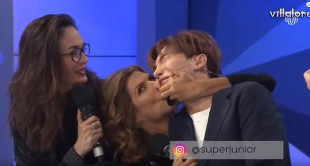 SJ團員接二連三的上前索吻,連神童都走過去讓主持人親一下。