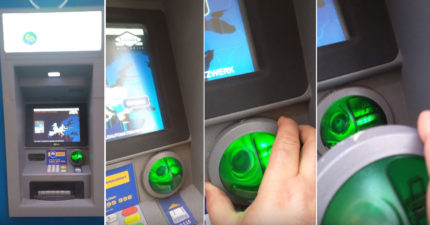 他在提款的時候發現插卡孔怪怪的就扯下來,當一反面看到後就趕緊叫隔壁的女生馬上停止提款!