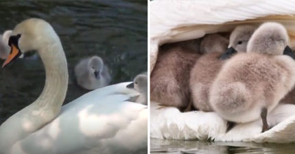 真正的天鹅船来囉~天鹅妈优雅滑过水面 羽翼打开小乘客开心跳水超Q