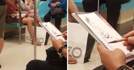 姜还是老的辣!捷运老伯1秒手绘对面「深V正妹」屌打偷拍狂