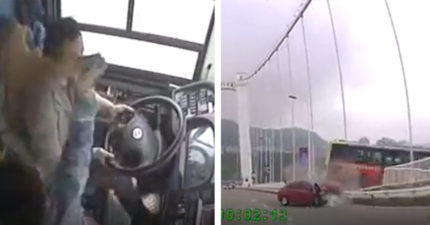大媽坐過站直接槓上司機「拿手機」敲頭 下秒公車直接埋入長江…