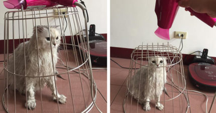 貓奴怕被攻擊準備「DIY洗澡神器」 喵皇屎臉:給本王把結界拿開!
