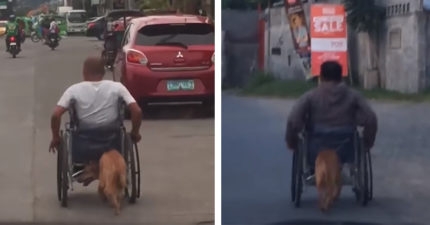 影/車禍後再也無法行走 愛犬跟後頭「幫推輪椅」:主人別怕,我在後面撐著你~