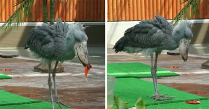 鯨頭鶴呆萌「吃法超蠢」 網笑噴:難怪快絕種!