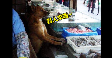 老闆看狗狗可憐就好心收養了,沒想到狗狗超專業讓他生意大好!