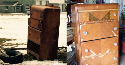 她跟朋友買了一個朋友以為已經是垃圾的櫃子打算要大改裝,看到改裝完朋友才發現太後悔了!