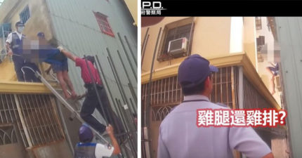 跳樓男懸坐屋頂尋死,暖警「直接來硬的」食物誘捕:你要雞腿還雞排,我請你!…他直接爬下梯子 (影片)