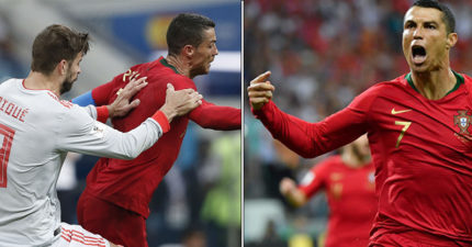 世足/C羅「帽子戲法」黃金踢3球追西班牙 進球瞬間「摸下巴」挑釁梅西