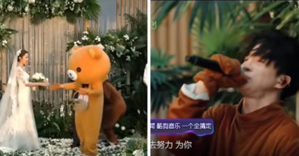悲情王子逆襲!2隻小熊亂入「新人婚禮」 脫下頭套竟是歌神…網笑:新娘想改嫁了