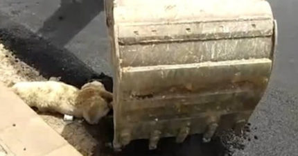工人鋪路「懶的叫醒浪浪」 路人崩潰喊:牠被鑲進去了!