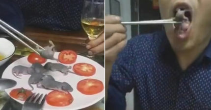神秘菜餚「三吱響」夾無毛小鼠仔生吞,他一口咬爆「好吃到猛點頭」錄影的人全吐了…(影片)