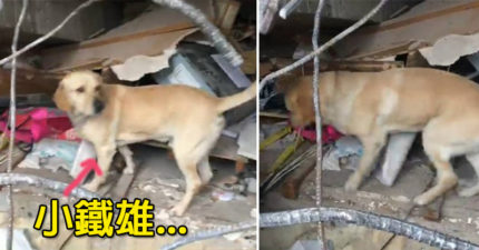 小鐵雄穿梭在統帥飯店瓦礫堆,在眾人絕望的時候「突然對著鋼筋水泥堆中狂吠!」(影片)