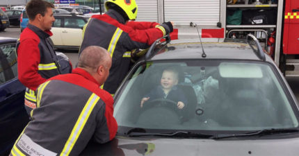 14月大寶寶手握方向盤「超萌燦笑」網路爆紅!但車外面的消防員急死了!