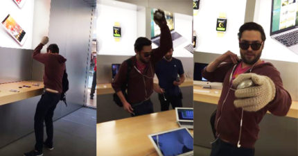 這名男子因為不滿蘋果竟當場「拿鐵球狂砸店內每一台iPhone」,光1分鐘影片就「砸了12台iPhone」…(影片)