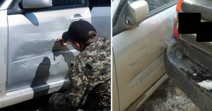俄國軍人的車子被撞到不但沒生氣反而「拿出一支筆開始亂畫」,幾分鐘後現場所有人都要求自己車被撞花了!
