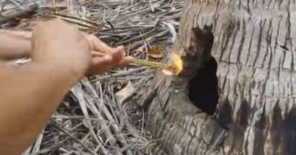 他拿一把香往樹洞裡燻 手伸進掏出「滿滿驚喜」令人讚嘆大自然!