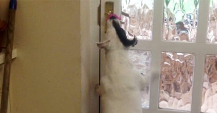 狗狗拚死拚活都要出去玩 「嘴咬門把」意外魔性Q彈