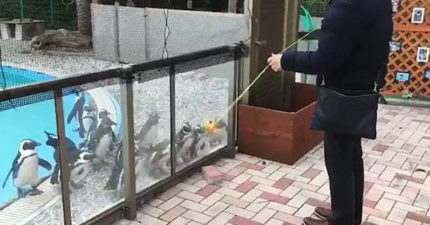 高手表演催眠溜溜球 企鵝死盯超入迷「一排腦袋跟著轉」