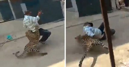 野生花豹突闖民宅大鬧,0:09「飛撲男子發狠狂咬」沒人敢上前救!(影片)