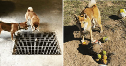 球球卡排水蓋上 小屁柴兄弟來回踱步:兄弟你去撿吧…