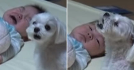 小主人哭哭「保姆汪」好慌 仰天「啊~嗚」幫安撫:別哭了啦!