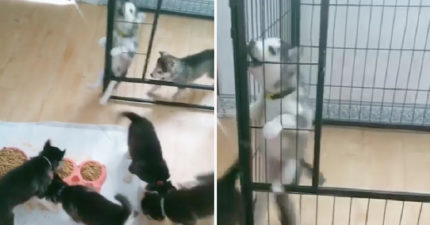 哥哥姐姐都衝出去吃飯 傻月被困「隱形門」裡主人笑慘:跨出來啊!