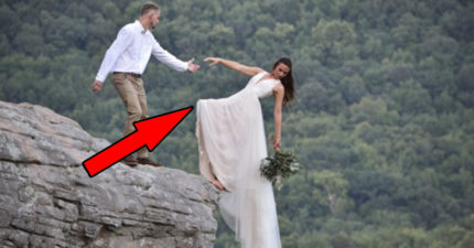 為拍照不要命?新人懸崖拍婚紗照 靠新郎一手拉住太驚險!看清一物後卻淡定了