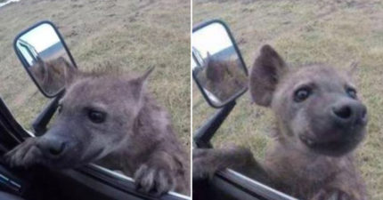 可愛鬣狗趴車窗討食 車主看「後照鏡」嚇傻:還好沒開門