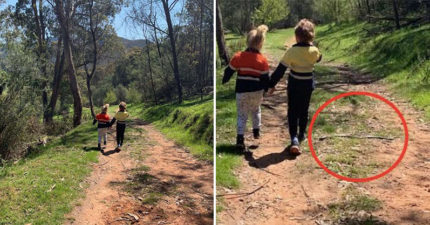 她拍下「兄妹溫馨散步照」驚見兒子腳邊藏致命生物:差點沒命
