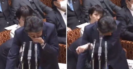 影/安倍晉三「開會狂咳嗽」還不戴口罩 他「手遮嘴+擦西裝褲」讓人看傻眼!