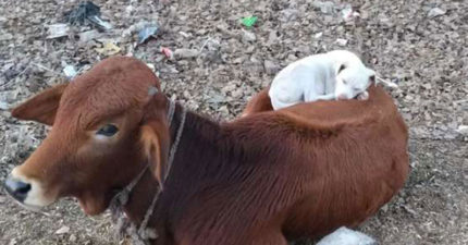小白狗爽躺「母牛身上午睡」爆紅 她貼心「不敢動」畫面超有愛❤