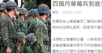 嗆服役4個月是「草莓兵」 12天替代役男酸:健身一天抵他們5天